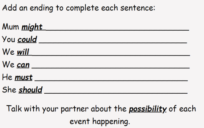 LC: to use modal verbs to indicate degrees of possibility