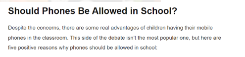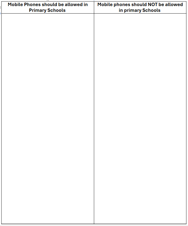 What reasons are given FOR and AGAINST allowing mobile phones in Primary Schools?
