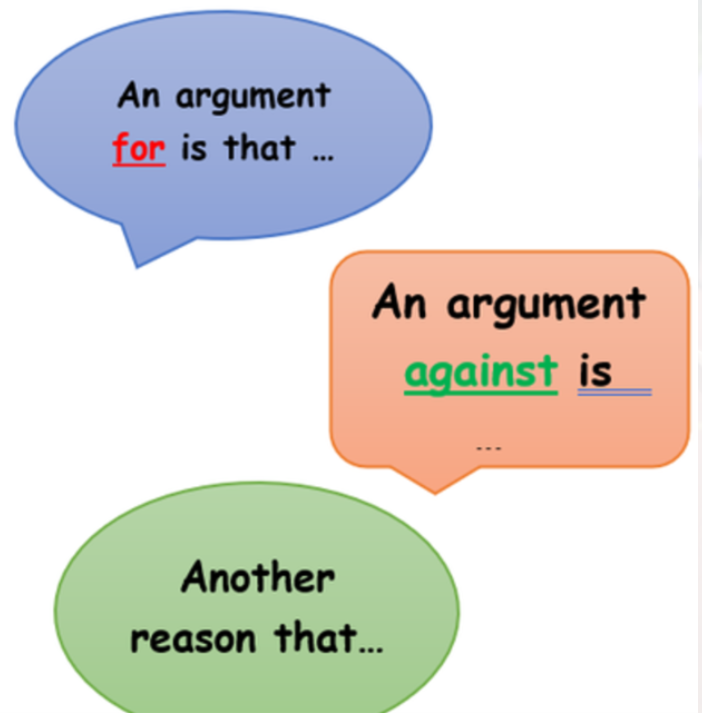 Using the ideas from yesterday's discussion, complete the table with 3 ideas for and 3 ideas against the topic.