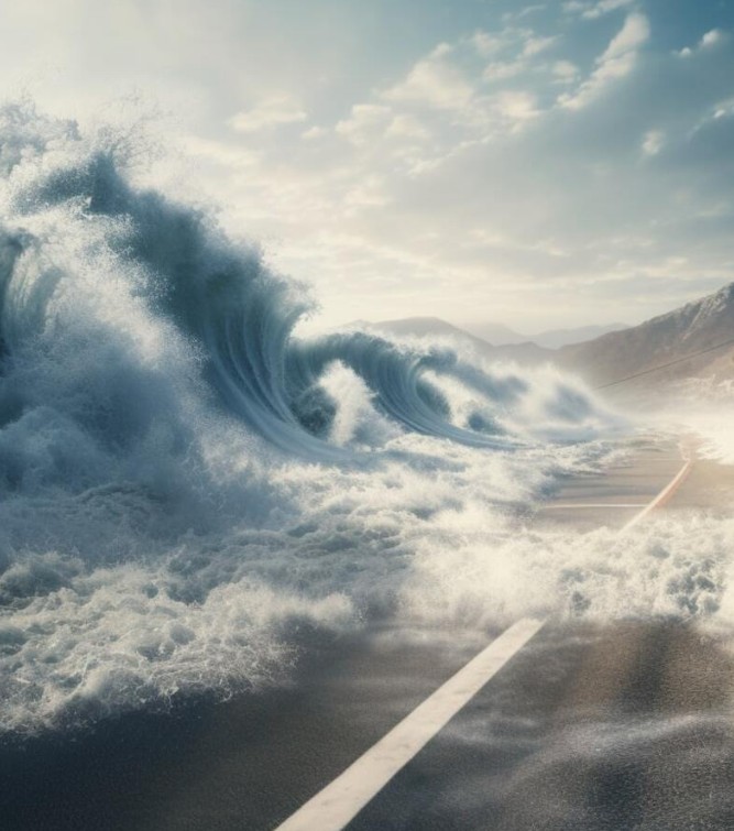Not too long into the journey, the beautifully clear, blue sky became dark and ominous. All of a sudden, crashing towards our car, was a colossal wave – not the kind you’d want to catch on a board either…