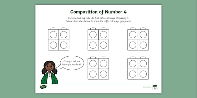 How can you make 4 using 2 colours of bricks? Record on this sheet.