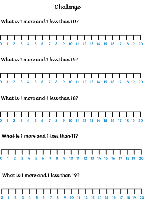 We have been looking at 1 more and 1 less of different numbers together this week using number lines. Today, you are going to have a go at answering some questions independently.