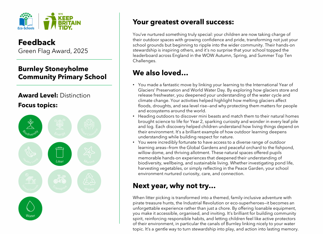 Congratulations on your 2025 Eco-Schools Green Flag! You've inspired a generation of young environmental leaders and made a lasting impact. You’ve gone above and beyond this year, thank you for nurturing the next generation of environmental champions and creating meaningful change.