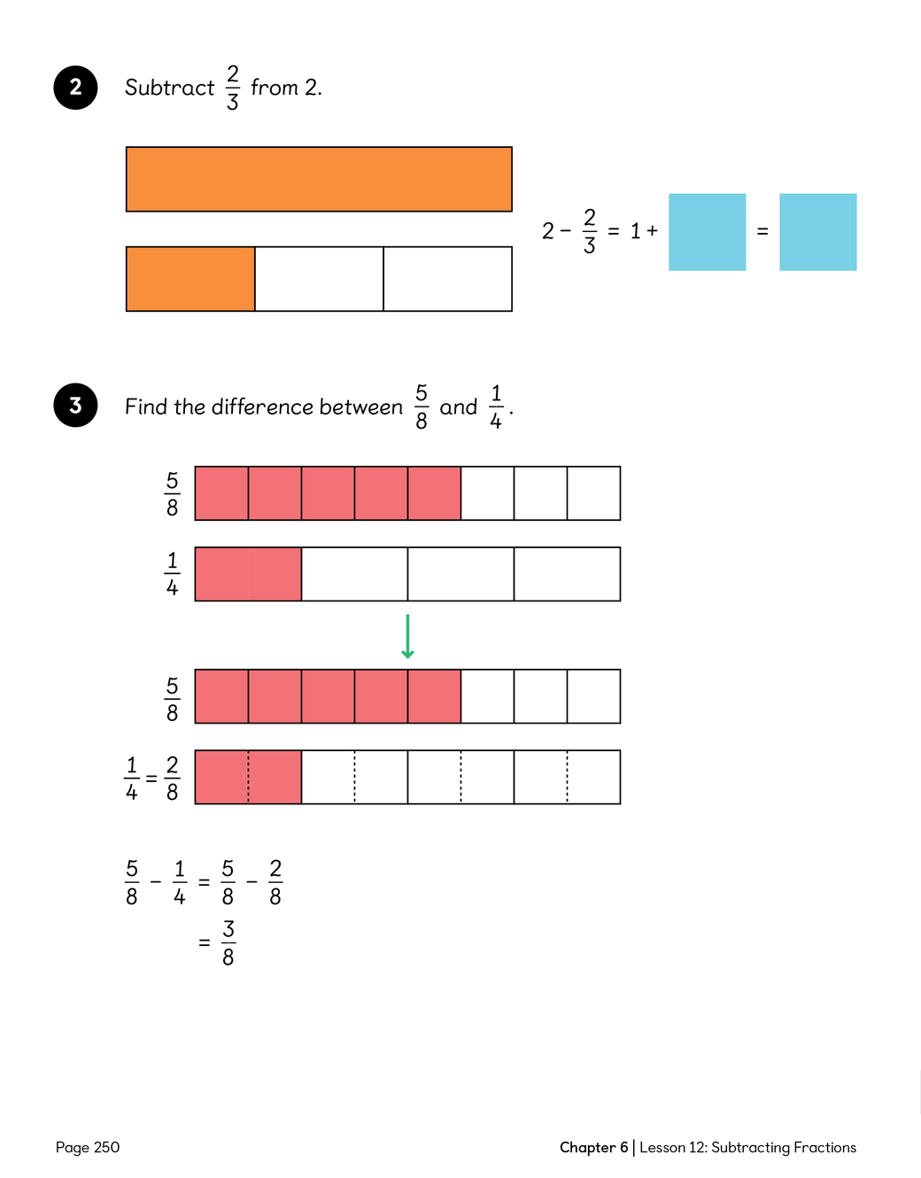 LC: To be able to subtract fractions with different denominators; to be able to subtract fractions from whole numbers.