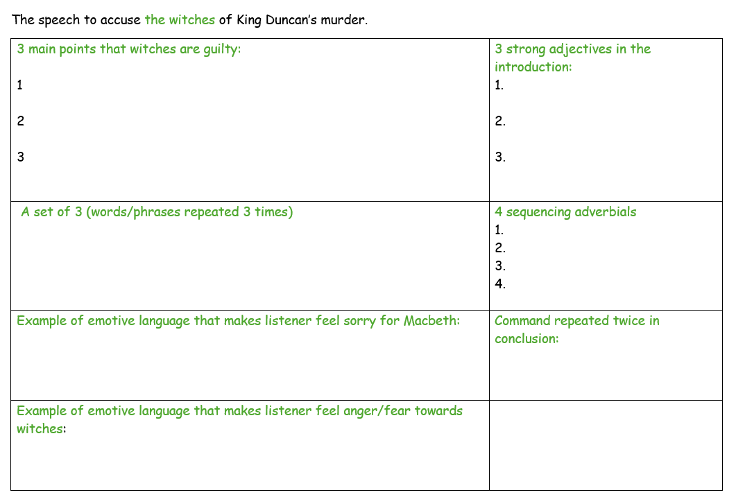 Read this model persuasive speech to persuade the jury that the witches are guilty of King Duncan's murder.