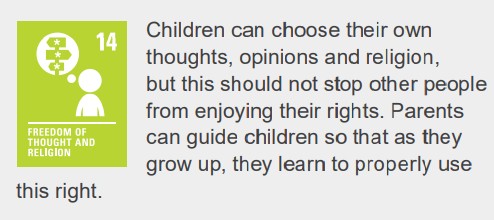 Article 14– Everyone has the right to their own beliefs and religion