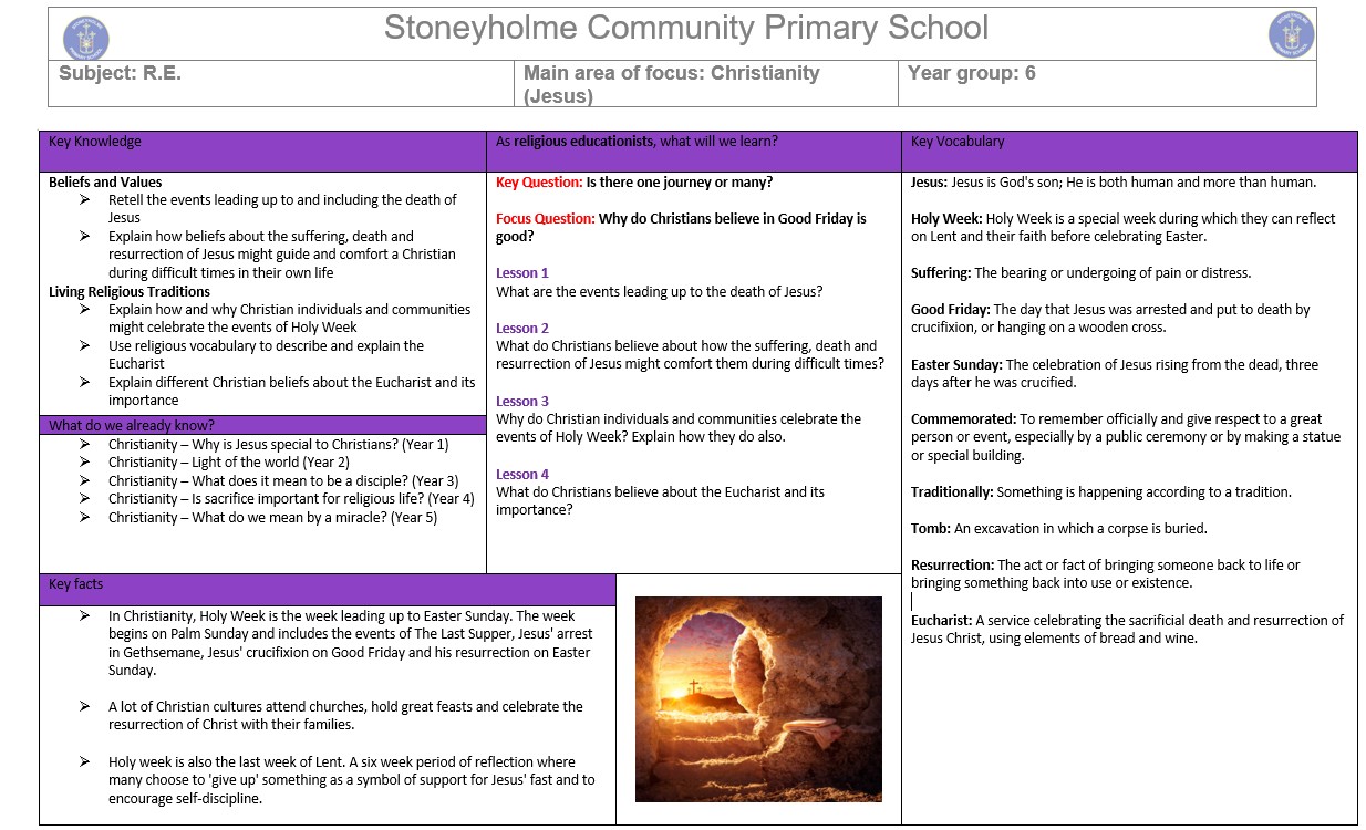 This term in Year 6, we will be learning about Christianity and why Easter is the most important festival for Christians. Christians believe that Jesus Christ is the Son of God. At Easter, they remember the final days of his life, his death, and his resurrection.