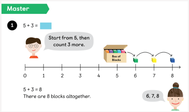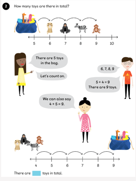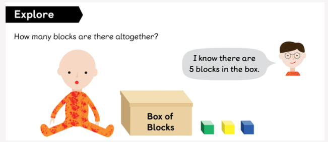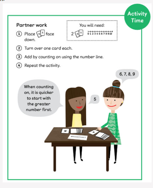 My friend said that if she puts 5 in her head and counts on, she can find the total number. Is this possible? How would you count on? Talk to your partner.
