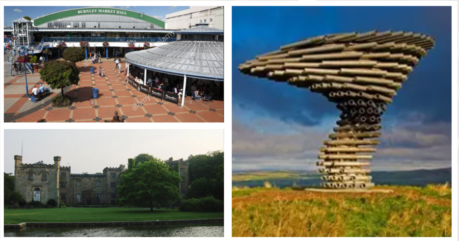 Last week, we looked at maps and photographs of areas of Burnley (a town) to identify human and physical features. Let's remind ourselves of what we found.