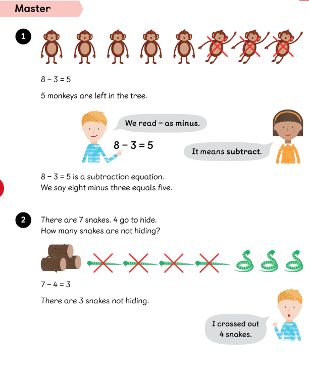 To be able to understand that subtraction can be done by crossing out or taking away.