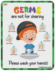 Germs are tiny creatures we can’t see. If we don’t wash our hands or brush our teeth, germs can make us cough, get a runny nose, or tummy ache. -