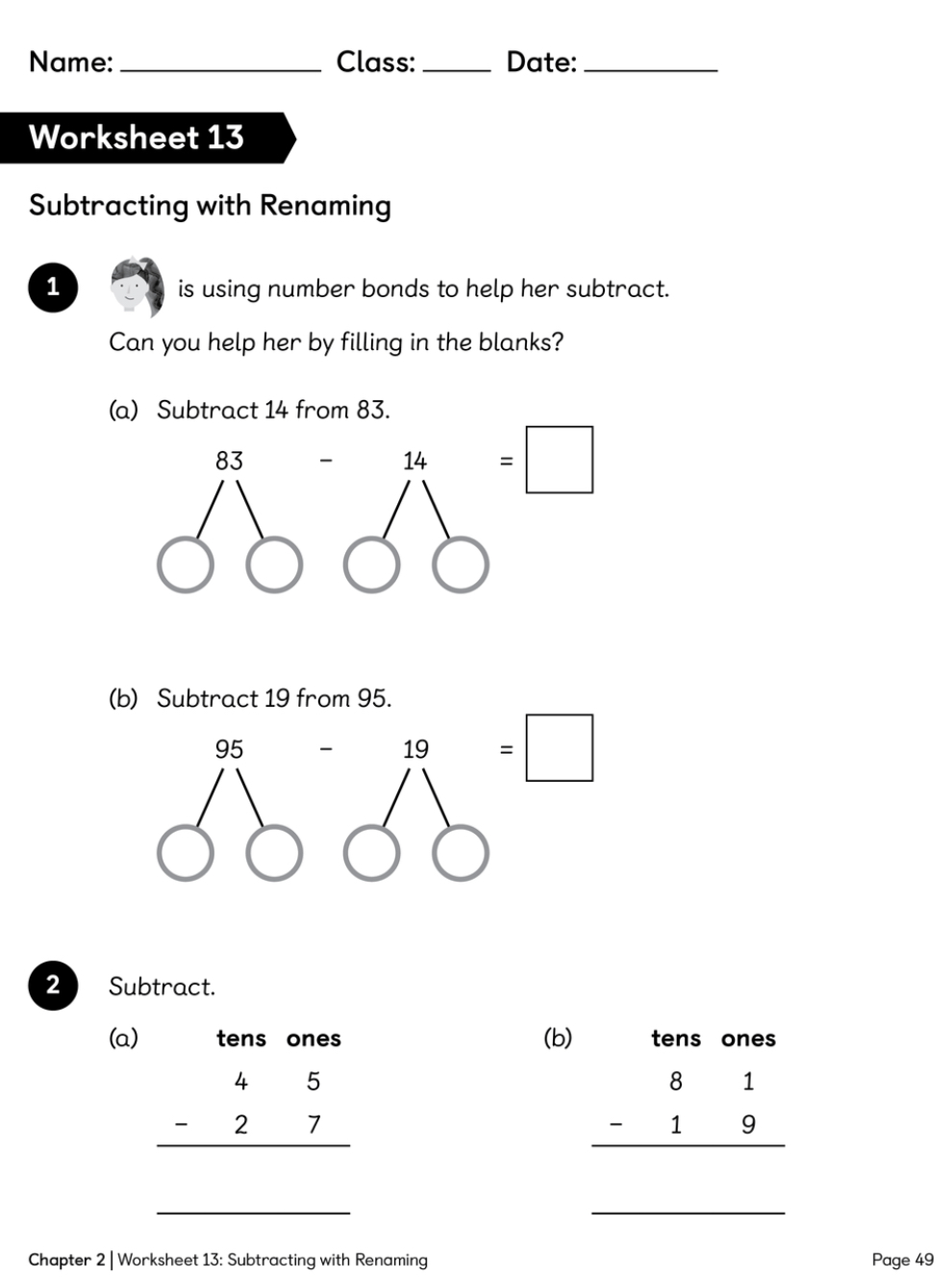 To be able to subtract a 2-digit number from another 2-digit number with renaming.