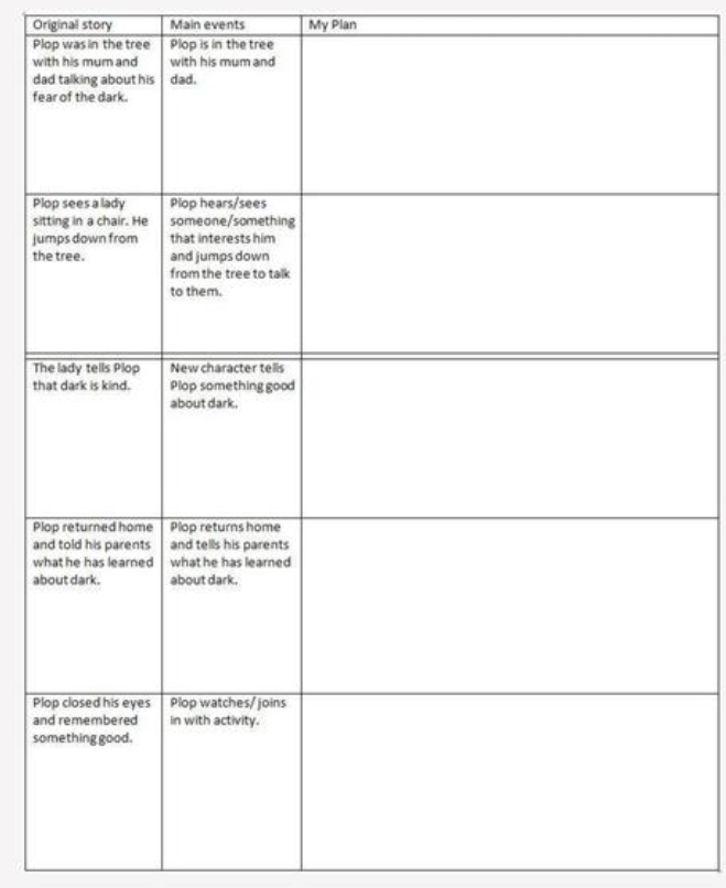 You are going to plan and write your own chapter based on our story 'The Owl who was afraid of the Dark