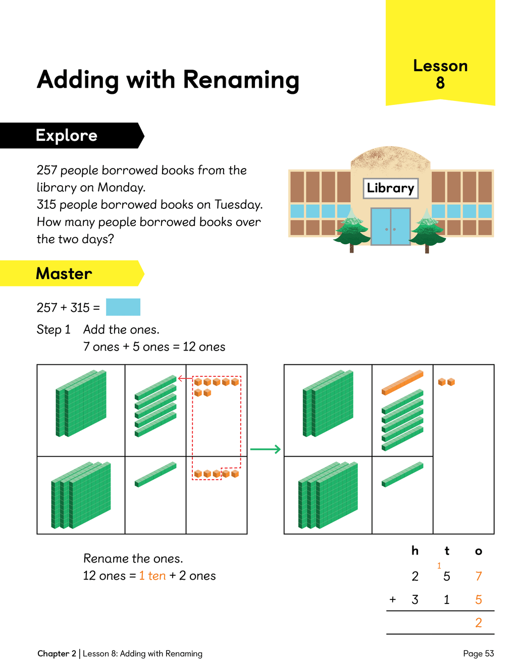 LC: To be able to add two 3-digit numbers with renaming the ones.