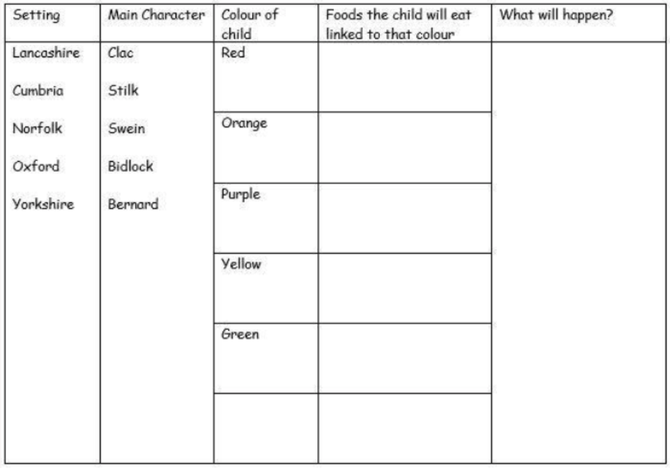 Use the table to note your ideas for a new Folk Tale.