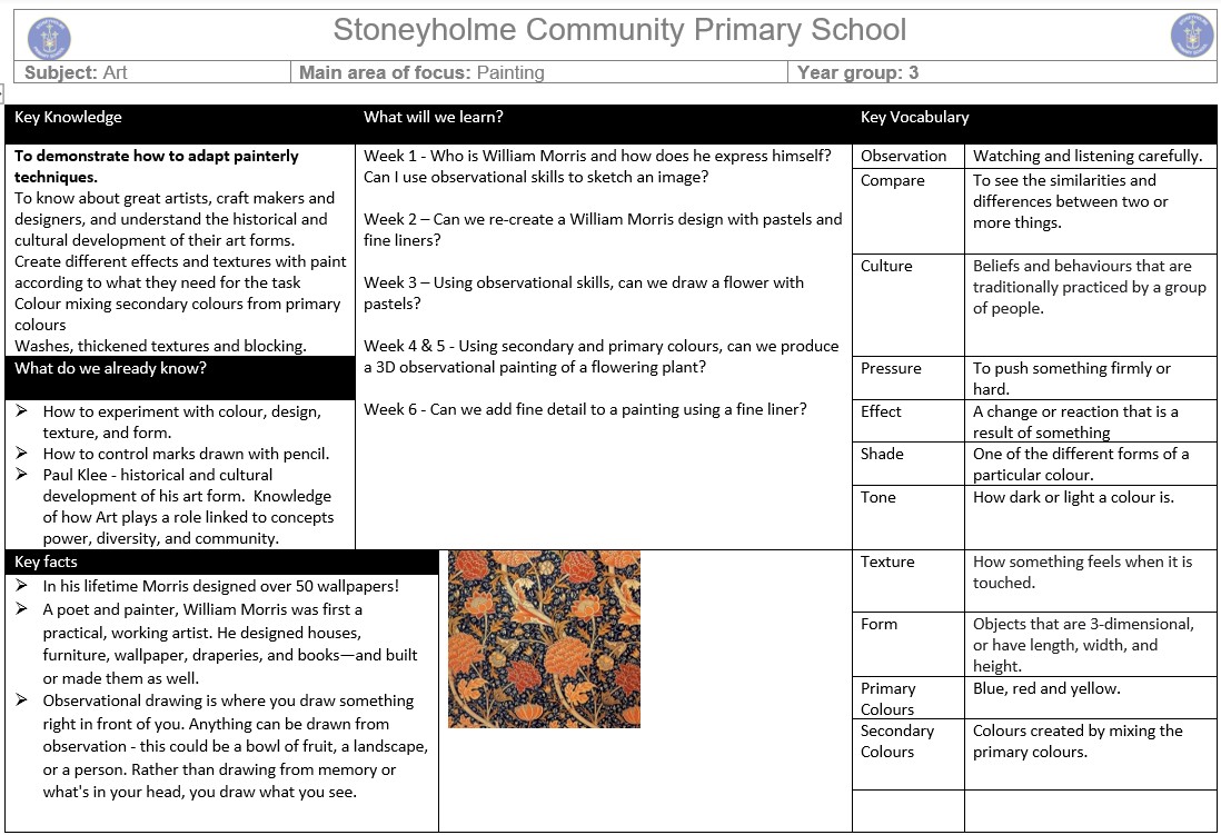 As Artists, children will be exploring expression through the works of William Morris.