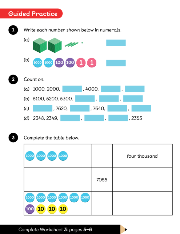 LC: To count in thousands, hundreds, tens and ones.