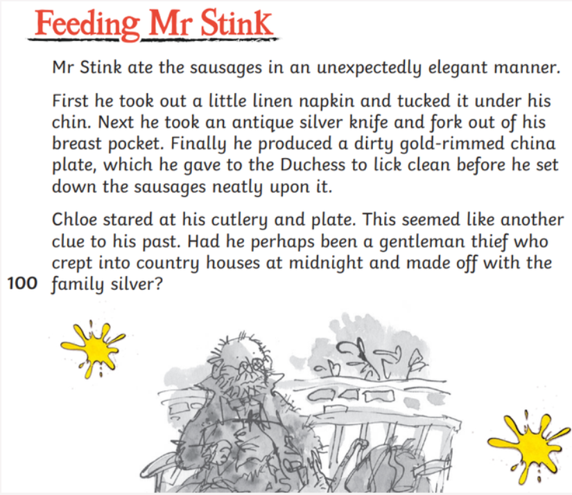 I: Why do you think the author uses the phrase ‘unexpectedly elegant’ when describing how Mr Stink ate his sausages?