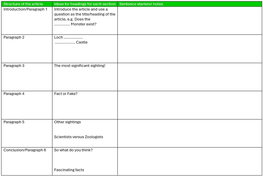 Today you are going to continue your plan for a magazine article for children your age about a different monster in a different place.