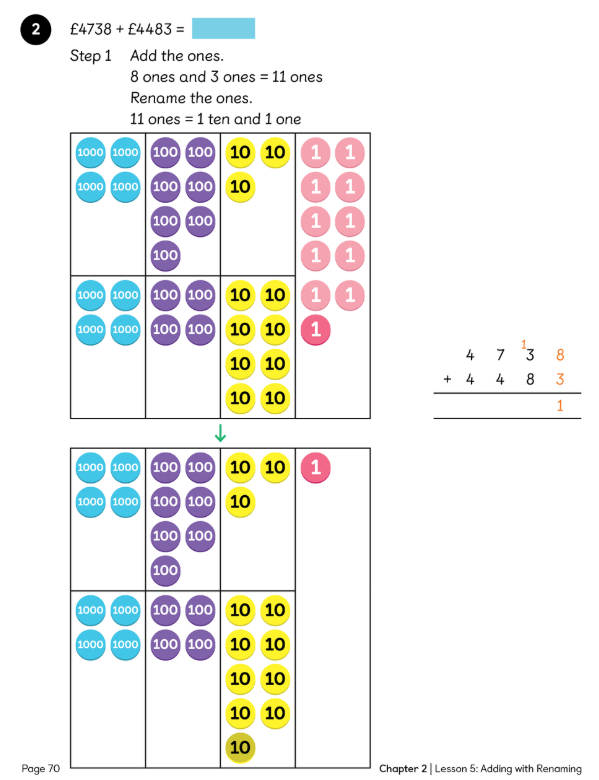LC: To be able to add two numbers with renaming in the hundreds, tens and ones columns.
