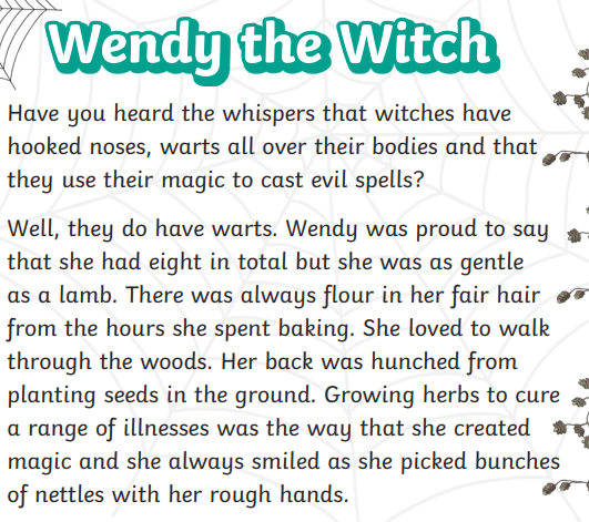 Your turn: Read the text below and then use character description to illustrate (draw) a picture of the character. Add labels to make links between text and imagination.