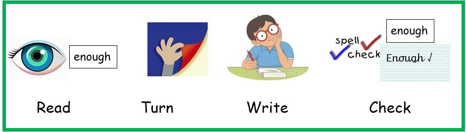 Now we will clap the syllables of each word then practise writing them in our spelling journals using the the Sticky Word Strategy:
