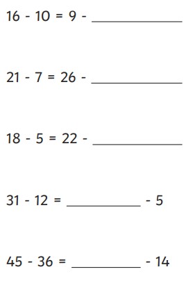 Make the equations balance by putting in the missing number. Both sides of the = sign must have the same value.