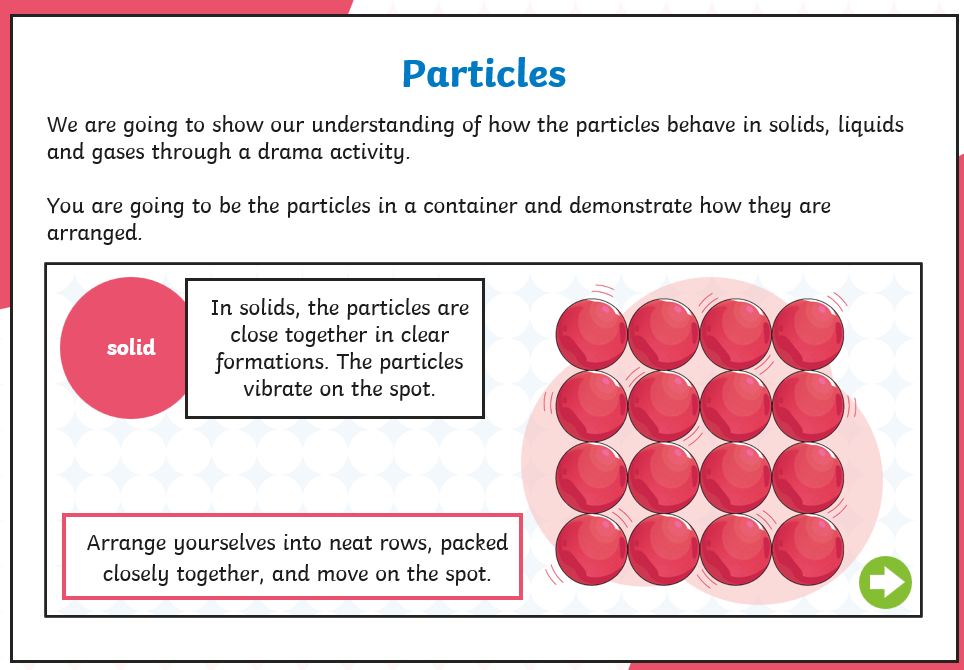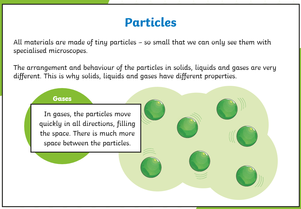 Draw the particles for solid, liquid and gases.