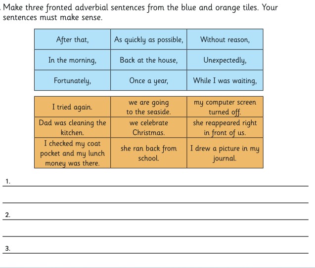 Chose two of the pictures you found. Stick them in your book and write a sentence about each of them. For example: