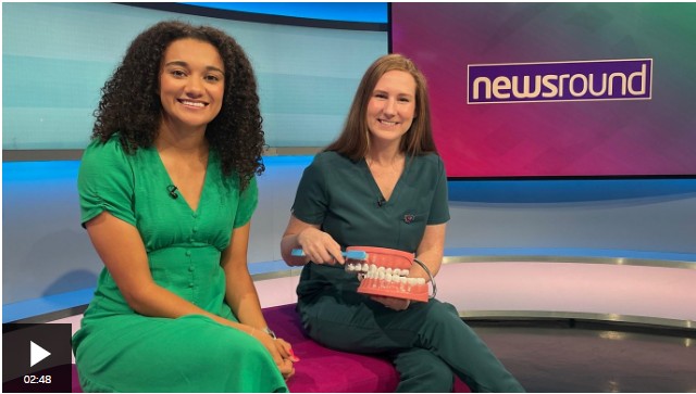 Using the large teeth and toothbrush models, can you demonstrate to someone else how to clean their teeth?