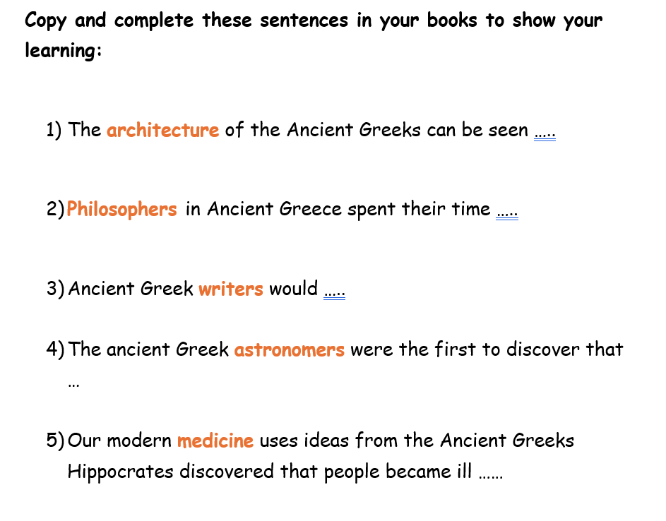 LC: to use our research skills to learn about the significant achievements of the ancient Greek civilisation