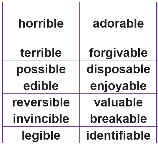 Suffixes ‘-able’ and ‘-ible’ can be tricky because they often sound the same.