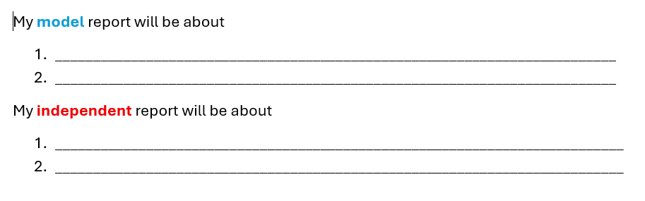 Now you have decided on your topics for the model and the independent write, we will practise our note-taking skills so you can gather information for your reports.