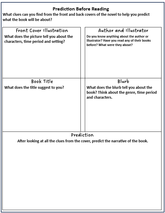 Good readers make predictions from information given on the front cover and the back of the book (blurb) before they even start reading a book.