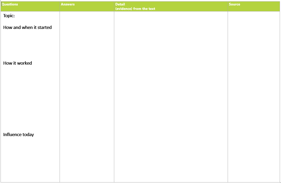 Using a QUADS grid, you are going to make notes to help you plan your independent non-chronological report.