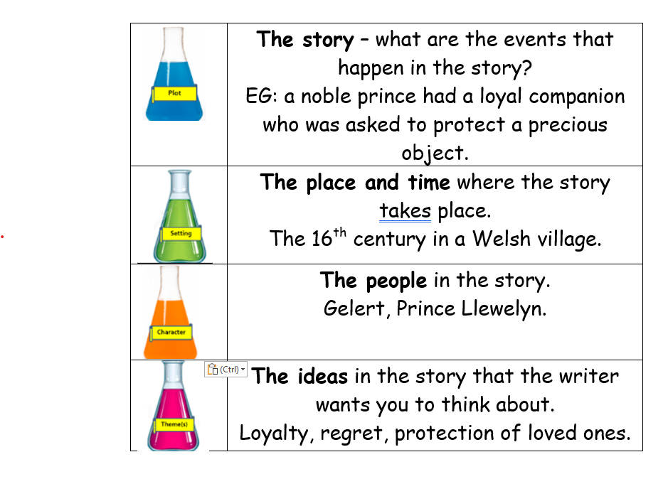 Your teacher will give you one element of fiction to focus on and you should answer the questions in complete sentences in your book.