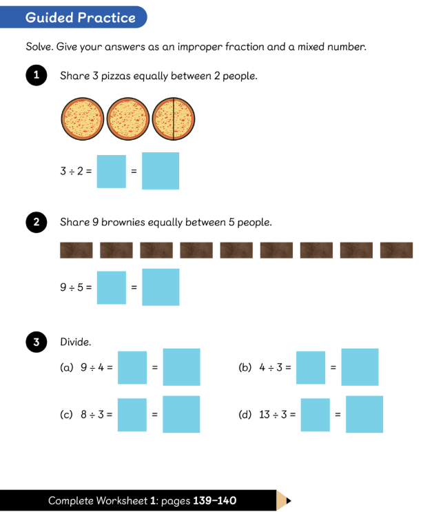 LC: To divide whole numbers to create fractions; to be able to create mixed numbers and improper fractions when dividing whole numbers.