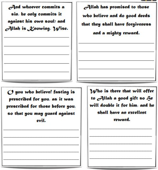 Read each verse carefully. Then write a sentence explaining what guidance you think God is giving Muslims in that verse.