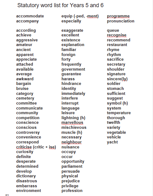 Activity: Work with a partner to test 10 words from the statutory spelling lists.