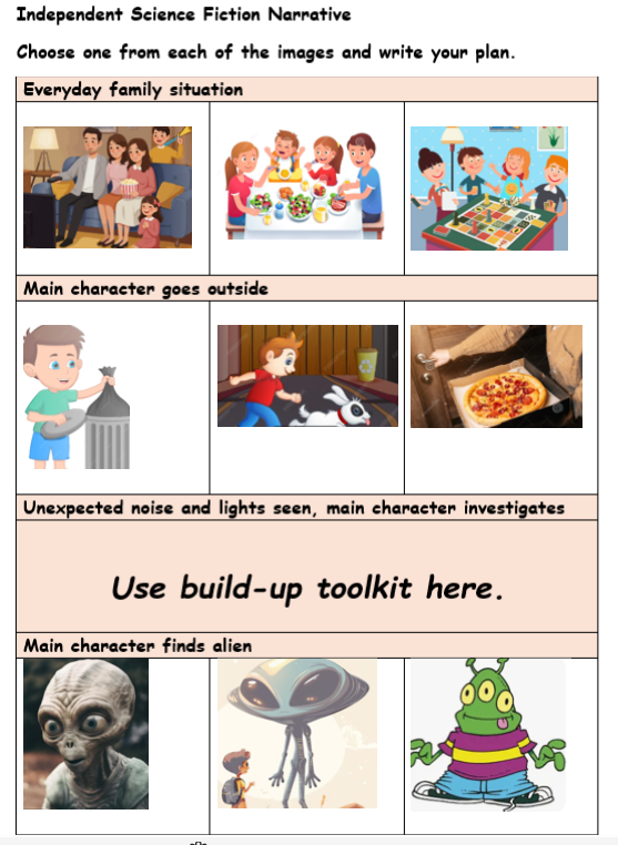 LC: to select appropriate structure, vocabulary and grammar for a Science Fiction narrative