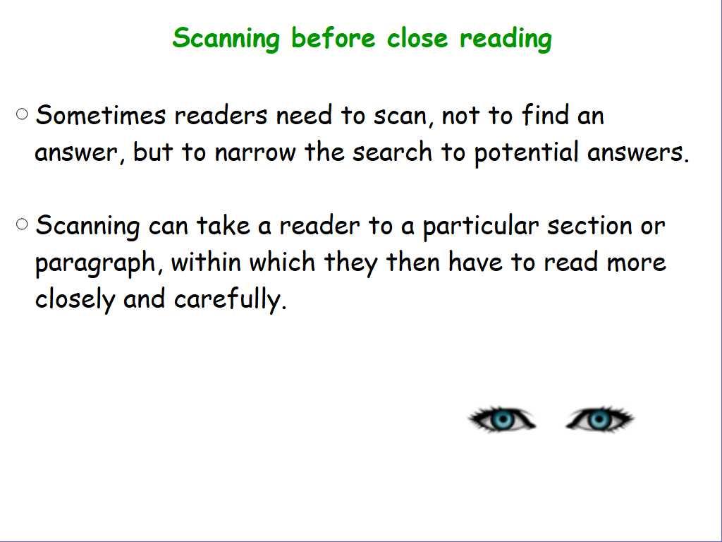 LC: To use skimming, scanning and close reading strategies to locate specific information.