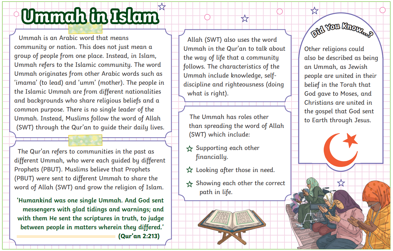 The Ummah teaches Muslims to care for and support one another, especially those who are in need.